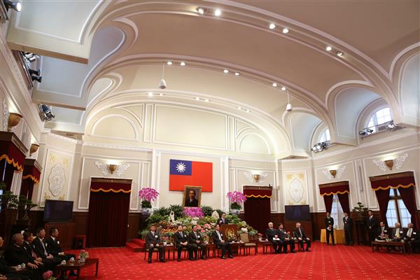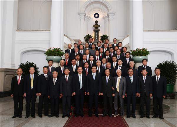 訪賓一行50餘人,由「中華民國全國商業總會」理事長賴正鎰率領、經濟部商業司長游瑞德陪同,前來總統府晉見總統,總統府副秘書長熊光華也在座。
