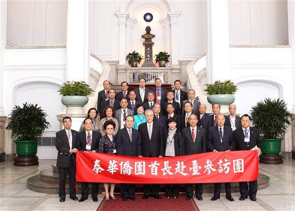 訪賓一行約30人,由「泰國華僑協會」主席余聲清及名譽團長饒培中率領,前來總統府拜會副總統,僑務委員會副委員長陳玉梅亦在座。