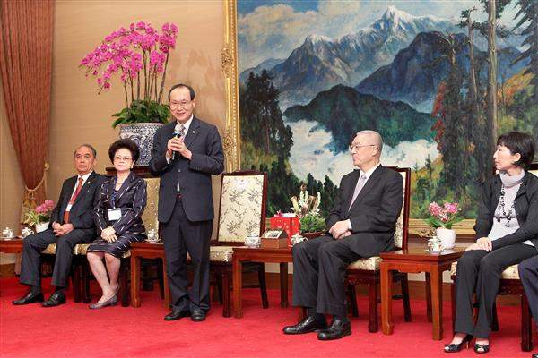 吳敦義副總統上午接見「泰華僑團首長赴臺訪問團」一行,代表馬總統誠摯歡迎訪賓回國參訪,除感謝與會者堅定支持政府,並期勉繼續與政府共同為中華民國永續發展貢獻心力。