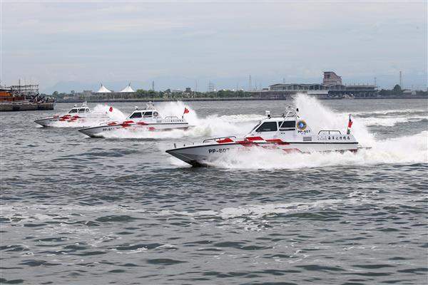 隨後,副總統頒發加菜金給該署同仁,並觀賞海巡快艇操演。