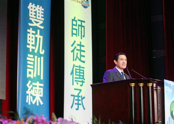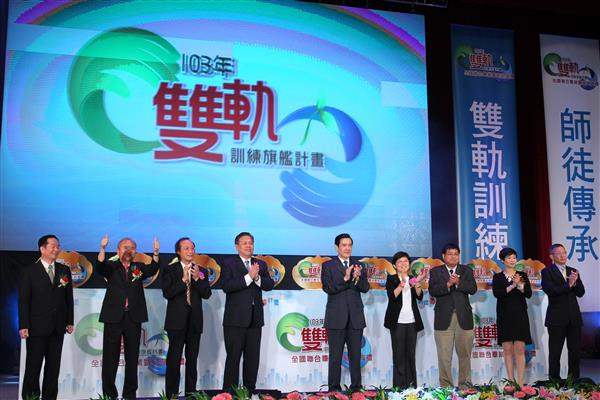 馬英九總統上午出席由勞動部所舉辦的「103年度雙軌訓練旗艦計畫聯合畢業典禮暨結訓典禮」,恭喜同學們畢業即就業,同步完成工作實務訓練與學科教育的目標,並說明政府推動《雙軌訓練旗艦計畫》及青年職業訓練政策執行之成效。