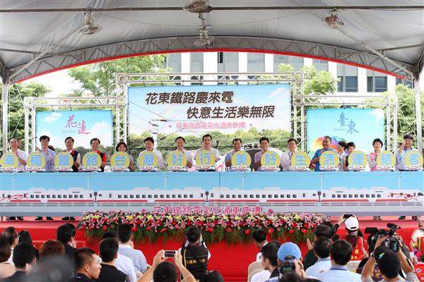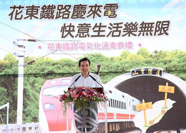 馬英九總統上午出席「花東鐵路電氣化通車典禮」,除肯定相關工程單位的努力付出外,亦盼全線通車更提升花東地區交通便利性。