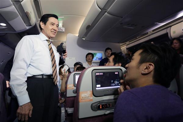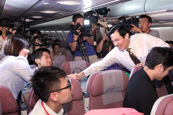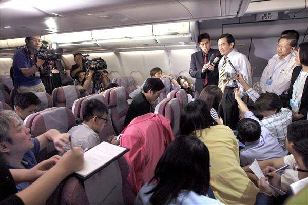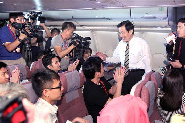 隨後,總統在機上接受媒體提問,就中國大陸國臺辦主任張志軍訪臺發表看法,總統於回應時表示,今年2月行政院陸委會主委王郁琦赴大陸訪問,與張志軍主任互稱官銜,張主任並於日前回訪,這代表雙方正視現實,為鞏固彼此關係邁向重要一步,尤其張主任係於3月學運事件後來訪,顯示兩岸關係和平發展不受此一因素之限制。