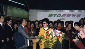 呂副總統秀蓮女士今天以「WTO展望列車」系列活動的方式,渡過民國九十一年最忙碌而有意義的元旦假期。