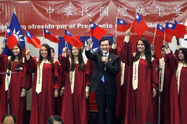隨後,馬總統舉杯向現場與會人士致意,席間並上台與「中巴文化中心中山學校」學生代表共同演唱「梅花」,現場氣氛十分溫馨、熱絡。
