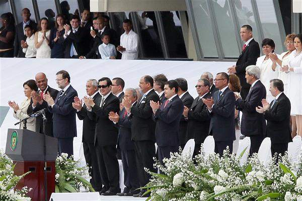 包括宏都拉斯總統葉南德茲(Juan Orlando Hernandez)、哥斯大黎加總統索利斯(Luis Guillermo Solís Rivera)、海地總統馬德立(Michel Joseph Martelly)、西班牙總理拉霍伊(Mariano Rajoy)及美國國務卿凱瑞(John Kerry)等各國元首與政要均出席恭賀。