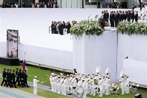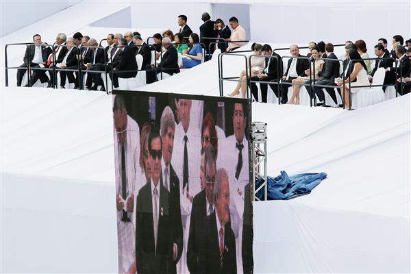 馬總統抵達會場後,由巴國禮賓官引導至觀禮臺第一排就座,瓜地馬拉總統培瑞茲(Otto Fernando Pérez Molina)及薩爾瓦多總統桑契斯(Sánhez Céren)分坐馬總統兩側。