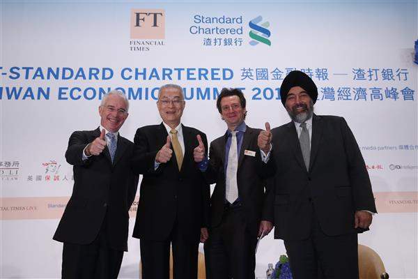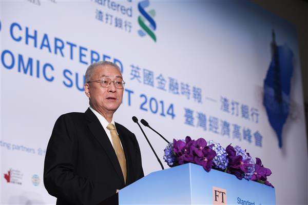 吳敦義副總統上午出席由英國《金融時報》與渣打銀行聯合舉辦的「2014臺灣經濟高峰會」,說明政府將透過「產業轉型,突破創新」、「市場開放,迎向世界」及「投資促進,創新創業」三大面向,強化經濟成長動能,進一步提升臺灣整體競爭力。