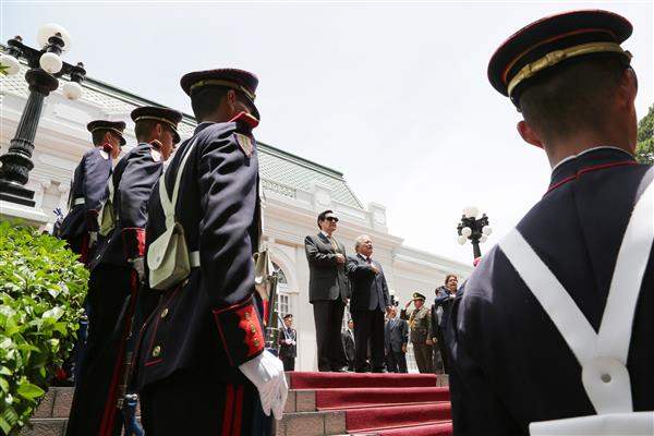 機場歡迎儀式結束後,馬總統一行轉赴薩國總統府與桑契斯總統會晤。馬總統抵達後,桑契斯總統於總統府外階梯前親自迎接,現場並演奏兩國國歌,續由薩國當地幼童向馬總統呈獻傳統禮品,以表達對我訪團之重視。