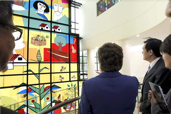 隨後,總統一行轉赴「中美洲統合體」(SICA)總部參訪。總統抵達後,薩國外交部長馬丁內斯(Hugo Roger Martinez Bonilla)及SICA新任秘書長德阿薇絲(Victoria Marina de Avilés)親自於大廳迎接,並陪同入內參觀。