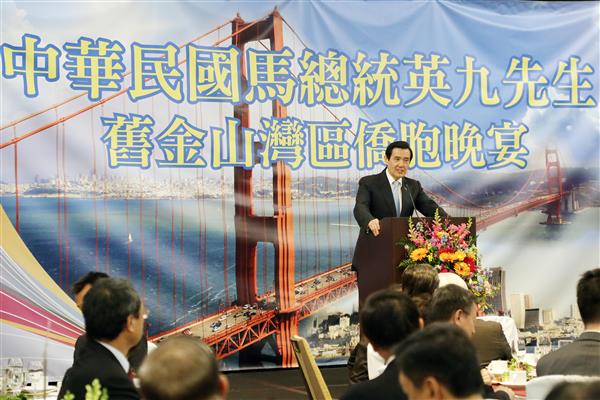 晚間,總統出席僑界晚宴,於致詞時表示,他於1971年首度造訪舊金山,參加美國國務院「亞太學生領袖訪美計畫」,並於當地停留三週,當時目睹美國反戰學運及華人留學生保衛釣魚臺列嶼等運動;返國後,他也參與保釣運動,並曾分別前往美國及日本大使館抗議,40多年來,他從未改變此一捍衛我國領土與主權之立場。