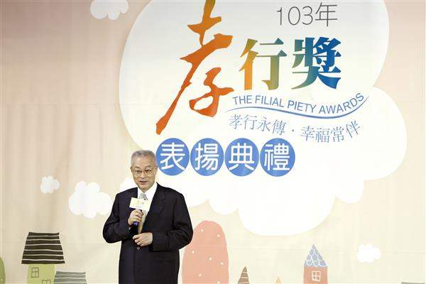 吳敦義副總統今(18)日上午出席「103年全國孝行獎」表揚典禮,感謝所有孝行楷模帶給社會正面力量,並期許國人效法渠等精神,即時行孝。