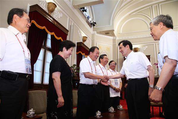 馬英九總統今(18)日上午接見「世界臺灣商會聯合總會第20屆重要幹部回國訪問團」,除歡迎渠等返國,也說明政府對外政策及參與區域經濟整合之努力與成果。