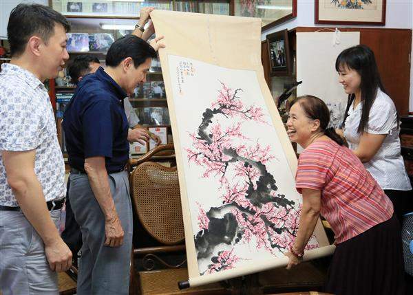 總統與友人茶敘間相談甚歡、互動愉快,王媽媽特致贈總統一幅親手繪製的水墨畫,感謝總統今日來訪。