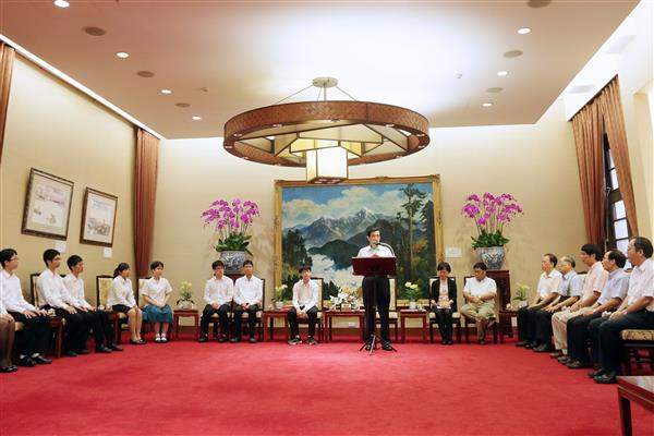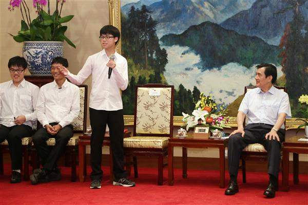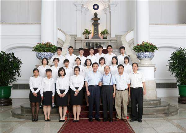 獲獎師生一行由中央研究院院士林榮耀率領、國立臺灣科學教育館館長朱楠賢陪同,前來總統府晉見總統,教育部主任秘書王作台也在座。