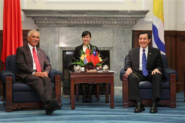 馬英九總統今(4)日晚間接見吉里巴斯共和國總統湯安諾(Anote Tong)伉儷,除代表我國政府與人民誠摯歡迎湯安諾總統再度率團來訪,並盼持續深化雙邊關係、兩國邦誼永固。