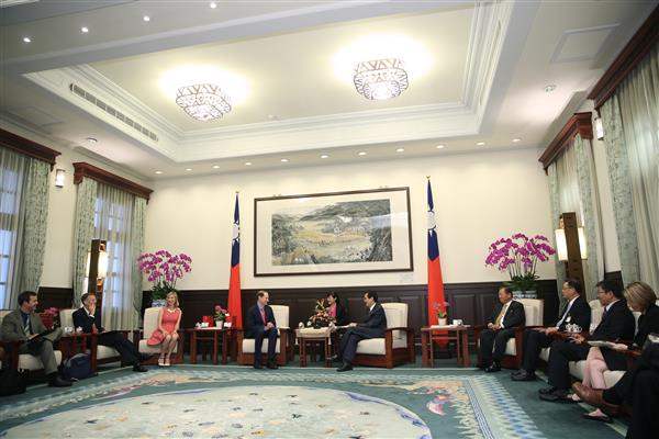 訪賓一行由美國在臺協會副處長酈英傑(Brent Christensen)及外交部次長高振群陪同,前來總統府晉見總統;國家安全會議副秘書長張大同也在座。