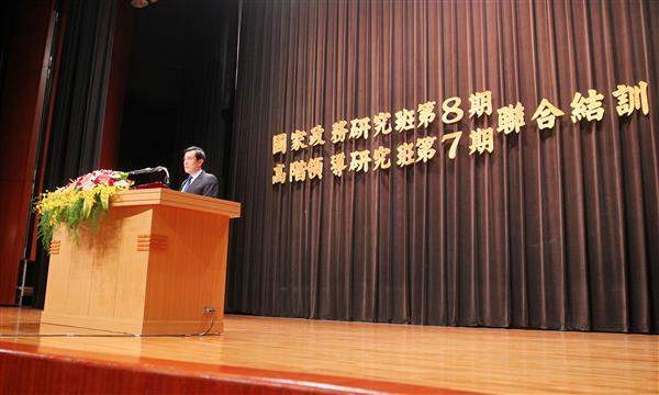總統致詞時表示,此次係他上任後第9度參加上開研究班的開訓或結訓典禮。今年計有49位正副首長與高階主管完成為期6週的國內課程,以及2週的國外短期講習,分別赴法國及英國參訓,目的是為了培育高階文官的國際視野,及彰顯政府對培育高階領導人才的重視。