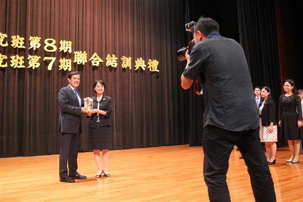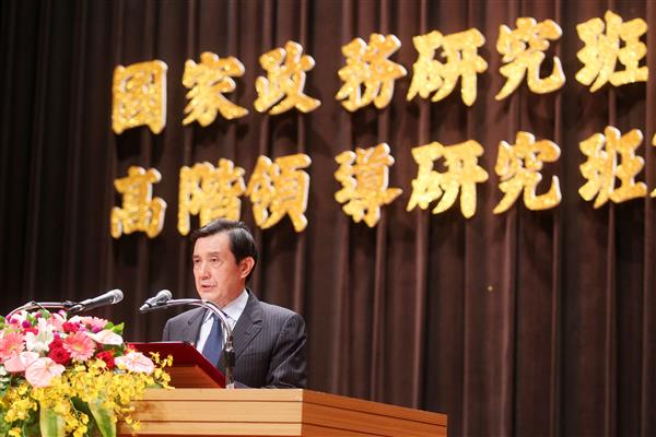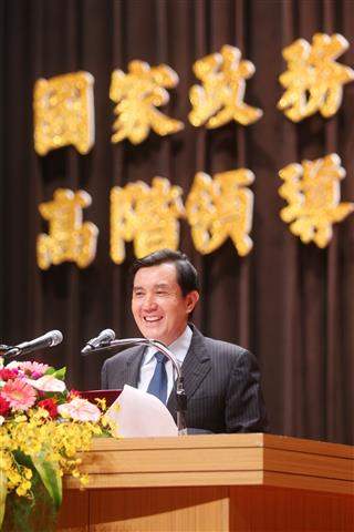 馬英九總統今(9)日上午前往公務人力發展中心,出席「國家政務研究班第8期及高階領導研究班第7期」聯合結訓典禮,並分別以政府處理臺菲關係、推動油電政策透明化、全民健保及募兵制度等措施為例,期勉高階文官共同努力,讓中華民國成為受人尊敬、讓人感動的國家。