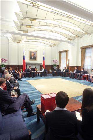 訪賓一行由美國維吉尼亞州前州長艾倫(George Allen)率領、美國在臺協會副處長酈英傑(Brent Christensen)及外交部次長高振群陪同,前來總統府晉見總統,總統府秘書長楊進添與國家安全會議副秘書長張大同也在座。