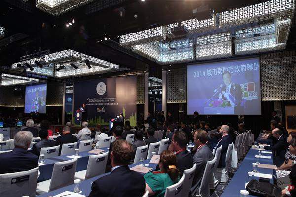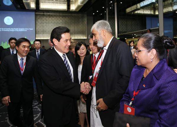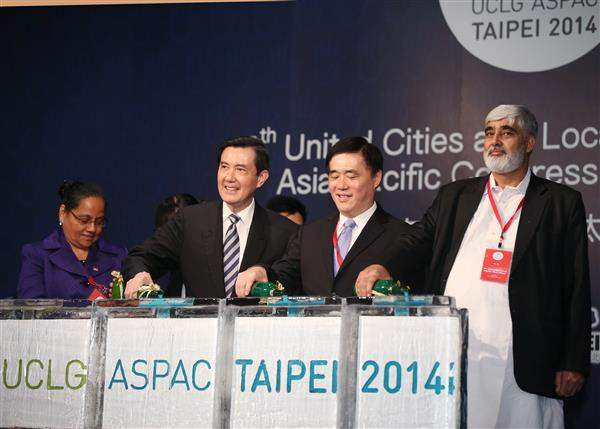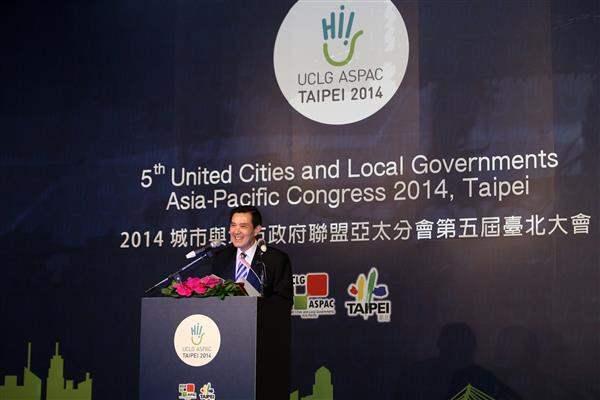 馬英九總統今(3)日下午出席「2014城市與地方政府聯盟亞太分會(UCLG ASPAC)第5屆臺北大會」,代表我政府向與會世界各國的城市市長及代表表達誠摯歡迎之意。