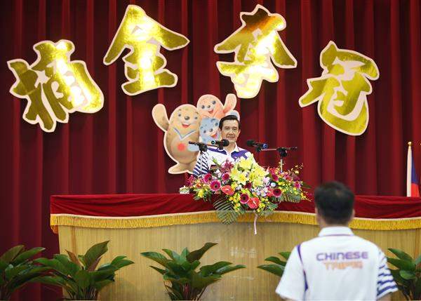 至於本屆亞運,總統表示,體育署已設定「奧運競賽項目」10金的目標,包括2016年里約奧運志在爭取3金、2017年臺北世界大學運動會則以「保7搶5」為目標。爰此,為達上述目標,近年來體育署已積極執行「選、訓、賽、輔」策略,培育優秀選手,同時改善運動環境、獎勵運動產業,計畫納入更多資源與資金,改善國內體育發展環境,進而提升我國競技運動水準。