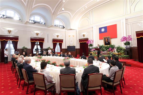 總統也向訪賓介紹我國近年來在永續發展、生技醫藥、漢學及法治等領域的發展與成果。在永續發展部分,總統強調,我國雖因失去聯合國代表權而無法參加《聯合國氣候變化綱要公約》(UNFCCC)及《京都議定書》(Kyoto Protocol),但他上任後積極推動節能措施,並明確對國際社會做出減碳承諾,訂下排碳量在2020年回到2005年水準、2025年回到2000年水準之目標。