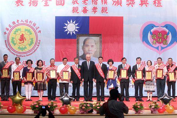 隨後,副總統並親自頒發獎牌予獲獎的模範老人、敬老楷模及親善孝親學生,以表揚渠等貢獻。