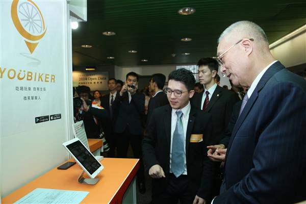 隨後,副總統在行政院政務委員蔣丙煌、經濟部工業局副局長呂正華及Open Data聯盟會長彭啟明等人陪同下,參觀會場展出得獎創新團隊的作品。