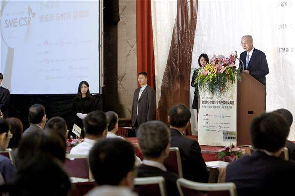 吳敦義副總統今(25)日上午出席「第四屆臺灣中小企業社會責任獎」頒獎典禮,除恭喜得獎企業,並盼未來企業社會責任(CSR)的觀念能在更多企業中生根,為臺灣社會帶來正面能量。