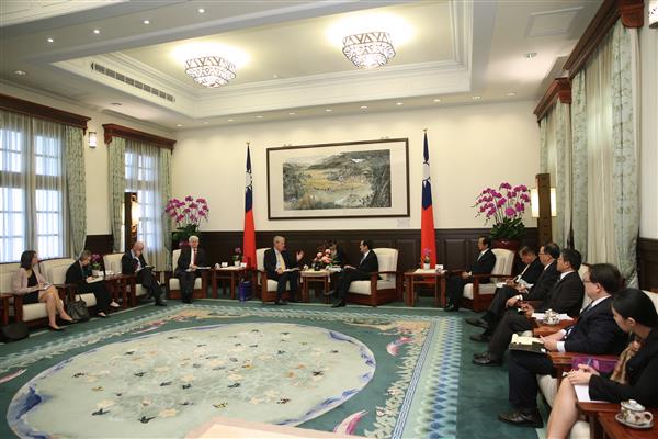 談及臺美經貿關係,總統表示,去年臺美恢復《貿易暨投資架構協定》(TIFA)協商,對雙方經貿發展具有重要意義;此外,對於我方有意願加入《跨太平洋夥伴協定》(TPP)一事,美國國務院及貿易代表署亦數度表達歡迎之意,同時雙方也刻正洽談《雙邊投資協定》(BIA),凡此均有利臺美經貿發展。