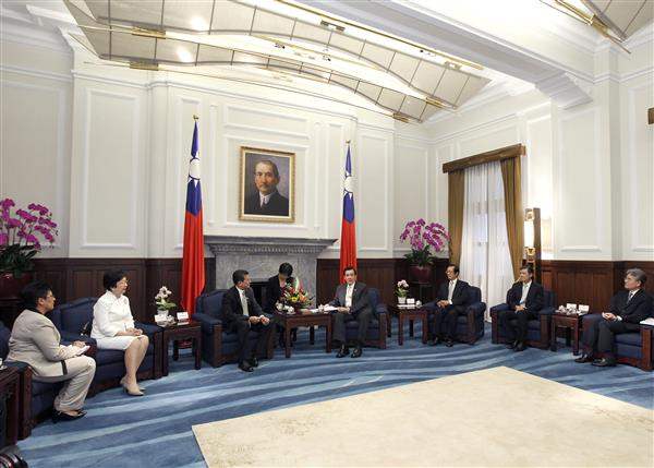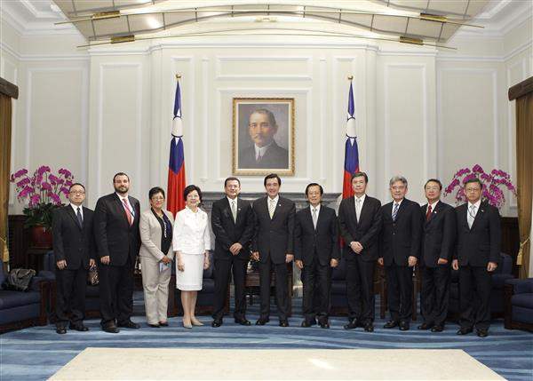 訪賓一行由外交部次長柯森耀及薩國駐華大使錢曾愛珠陪同,前來總統府晉見總統,總統府秘書長楊進添及國家安全會議秘書長金溥聰也在座。