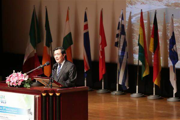 馬英九總統今(3)日下午前往臺北國際會議中心出席「第31屆世界醫檢科學學術大會」開幕典禮,除肯定醫檢科學在現代醫學佔有重要地位,並盼透過與會學者專家的研討與交流,促進國際醫檢科學的發展,為全人類健康福祉做出貢獻。