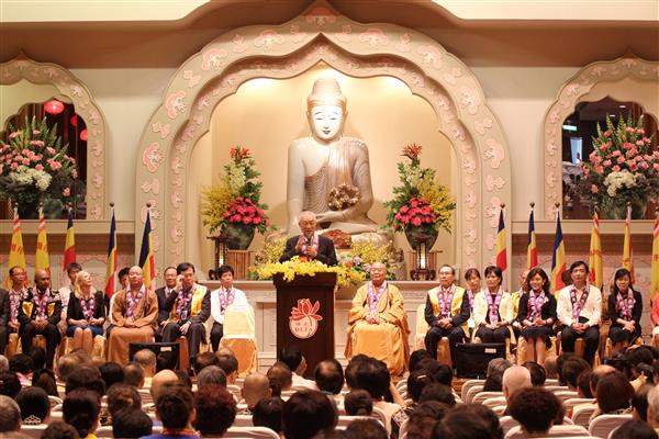 副總統致詞時表示,星雲法師多年來倡行「人間佛教」,對淨化社會人心卓有貢獻,而「人間佛教」的真義其實可以歸納為「三好五和」,意即待人處事應「存好心、做好事、說好話」,自然能夠達至「自心和悅、人我和敬、家庭和樂、社會和諧與世界和平」的境界。尤其社會近來遭遇一些天災地變,導致人心有所不安,所謂的「三好五和」,確實是一帖非常好的處方。