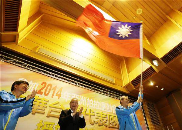 吳敦義副總統今(12)日下午出席「2014仁川亞洲帕拉運動會」代表團授旗典禮,親頒國旗及中華臺北帕拉林匹克委員會會旗予代表團,期許選手此行旗開得勝、為國爭光。