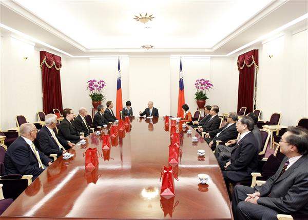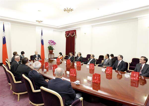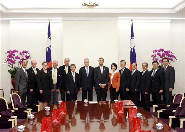 訪賓一行12人,由「中華民國露營協會」理事長詹德生及前理事長林晉章陪同,前來總統府拜會副總統,外交部次長史亞平亦在座。