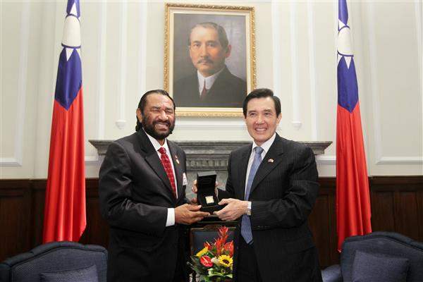 訪賓一行由外交部次長高振群陪同,前來總統府晉見總統,國家安全會議副秘書長張大同也在座。