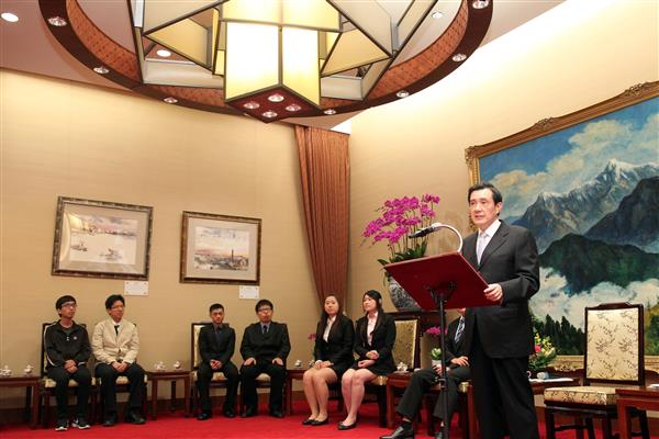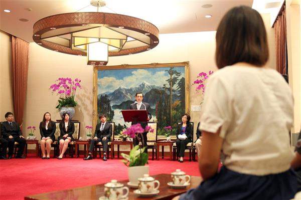馬英九總統今(16)日下午接見「102年政策研發競賽優勝團隊」,除肯定優勝隊伍多元務實、充滿創意的政策提案,亦期勉青年能多參與公共議題,並以理性溝通的方式表達訴求與意見。