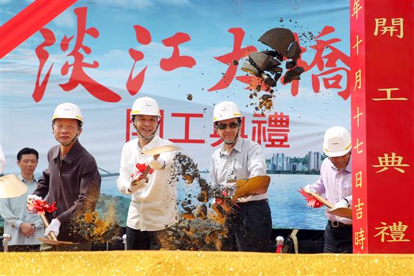 總統說,「淡江大橋」主橋段為900公尺、全長共計6公里,由交通部、內政部及新北市政府等單位共同分擔興建經費,他也特別要求施工單位必須將「每一分預算都用得恰到好處」,同時於工程落成啟用前,亦能讓行人及自行車騎士先行使用,以展現人文精神。