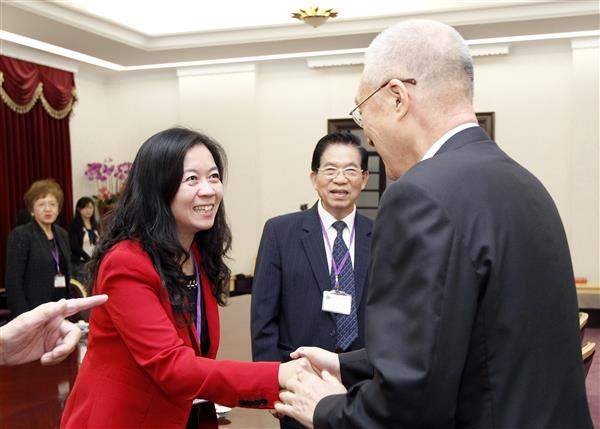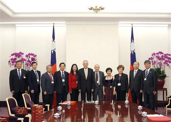訪賓一行由「美國僑學界超黨派聯誼會」召集人楊力宇及童惠珍率領,前來總統府拜會副總統,僑務委員會副委員長呂元榮及立法委員詹凱臣亦在座。