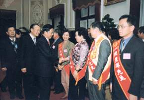 九十年全國好人好事代表五十多人,下午是由外交部次長簡太郎、表揚好人好事運動協會理事長李本仁陪同,前來總統府晉見總統。總統府副秘書長陳哲男也在座。