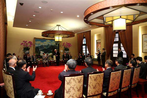 訪賓一行28人,由日本千葉縣森田知事率領,前來總統府拜會副總統,亞東關係協會會長李嘉進及秘書長羅坤燦均在座。