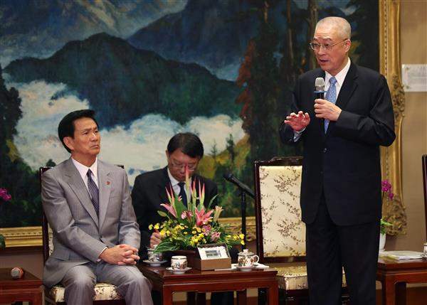 吳敦義副總統今(27)日上午接見日本千葉縣知事森田健作等一行,代表中華民國政府與人民誠摯歡迎訪賓來華參訪,除說明臺日各項交流成果外,並期盼能進一步深化雙方友好合作關係。