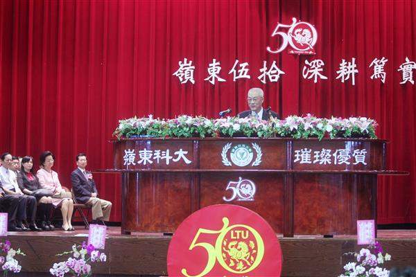 吳敦義副總統今(28)日上午前往臺中市出席嶺東科技大學創校50週年校慶,對該校長期以來為國家作育英才,表達肯定之意。