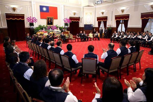 訪賓一行1百餘人,由國際獅子會臺灣總會300G2區總監趙永源率領,前來總統府晉見總統;總統府副秘書長熊光華也在座。