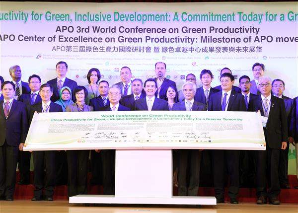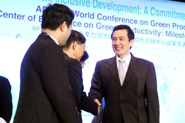 總統指出,我國是APO創始會員國之一,長期致力於綠色生產力發展,並於去年獲得該組織及各會員國肯定,成立「綠色卓越中心」,而該中心目前已成為亞太地區推動綠色經濟的重要平臺,促成許多國家與產業相互合作及結盟,共同提升綠色生產力,進而開創能源、經濟與環保的三贏局面。