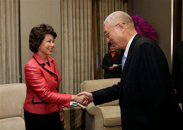吳敦義副總統今(14)日下午接見美國前勞工部長、「傳統基金會」傑出研究員趙小蘭(Elaine L. Chao)等一行,歡迎訪賓來華參訪,並說明我國內各項發展。