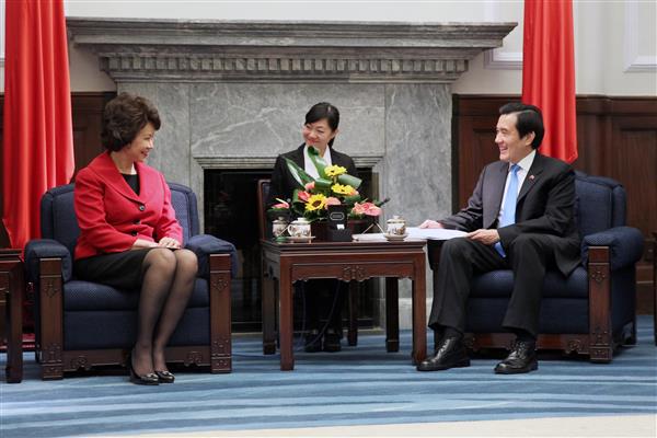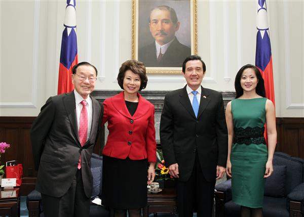馬英九總統今(17)日上午接見美國前勞工部長趙小蘭(Elaine L.Chao)等一行,除說明臺美關係近年來的長足進展,並盼雙方儘速洽簽《雙邊投資協定》(BIA),深化彼此的經貿往來。