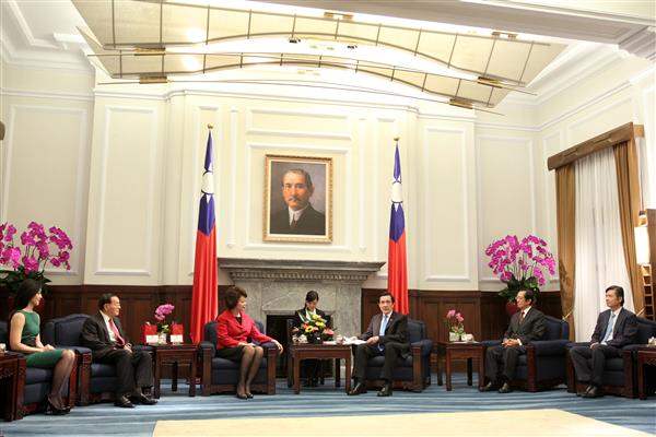 訪賓一行上午由外交部次長史亞平陪同,前來總統府晉見總統,總統府秘書長楊進添及國家安全會議秘書長金溥聰也在座。