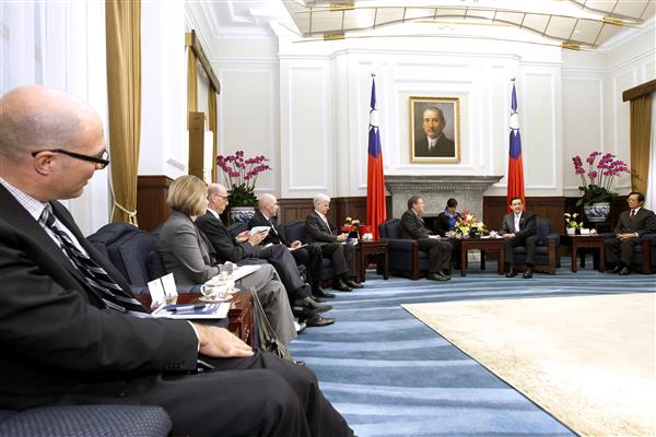訪賓一行由美國在臺協會處長馬啟思(Christopher Marut)及外交部次長高振群陪同,前來總統府晉見總統,總統府秘書長楊進添及國家安全會議副秘書長張大同也在座。